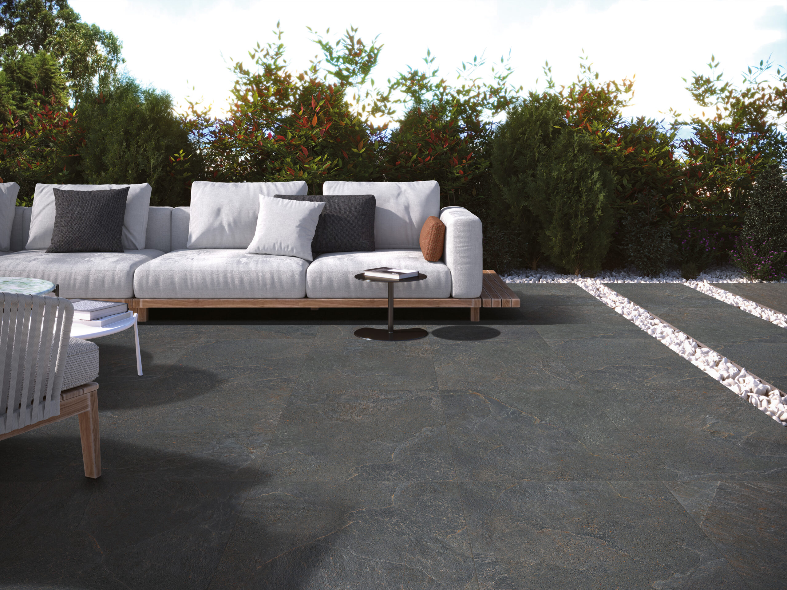 Inspiriert von der Schlichtheit und natürlichen Textur von Schiefer interpretiert Ardesia diesen Stein mit der Widerstandsfähigkeit und Funktionalität von Feinsteinzeug neu. Eine vielseitige und zeitgemäße Kollektion, ideal für Projekte, die Charakter, Authentizität und ästhetische Kontinuität in Innen- und Außenbereichen suchen. Erhältlich in einer sorgfältig ausgewählten Farbpalette, die den mineralischen Reichtum der Oberfläche unterstreicht.