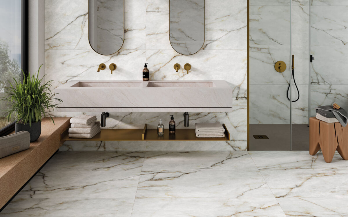 Der Designansatz von Bay zielt darauf ab, durch die Verwendung von schwarzen, goldenen und rötlichen Adern einen fließenden und modernen Look zu erzielen. Diese Adern werden mit Präzision aufgetragen, um dank der schimmernden Reflexionen, die in das Design eingebettet sind, ein Spiel aus Licht und Schatten zu erzeugen. Das Ergebnis ist ein Gefühl von Bewegung und Tiefe, das der Inneneinrichtung des Hauses eine zusätzliche Ebene von Komplexität und Raffinesse verleiht.