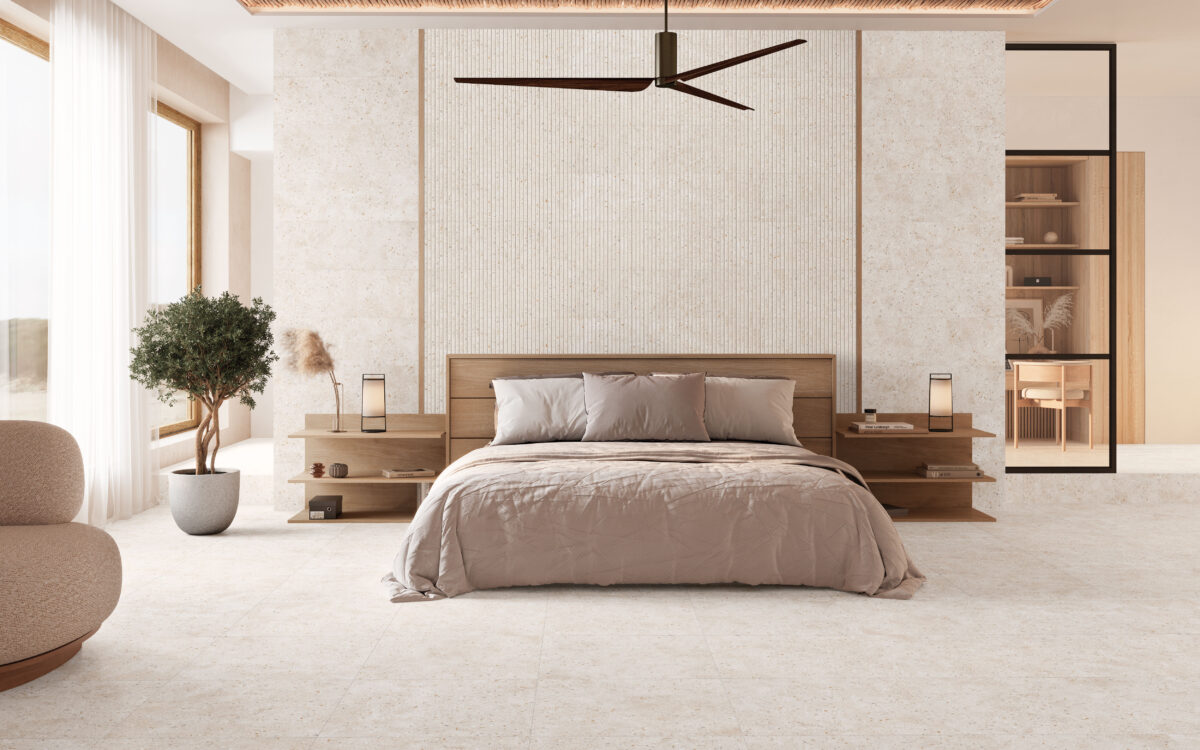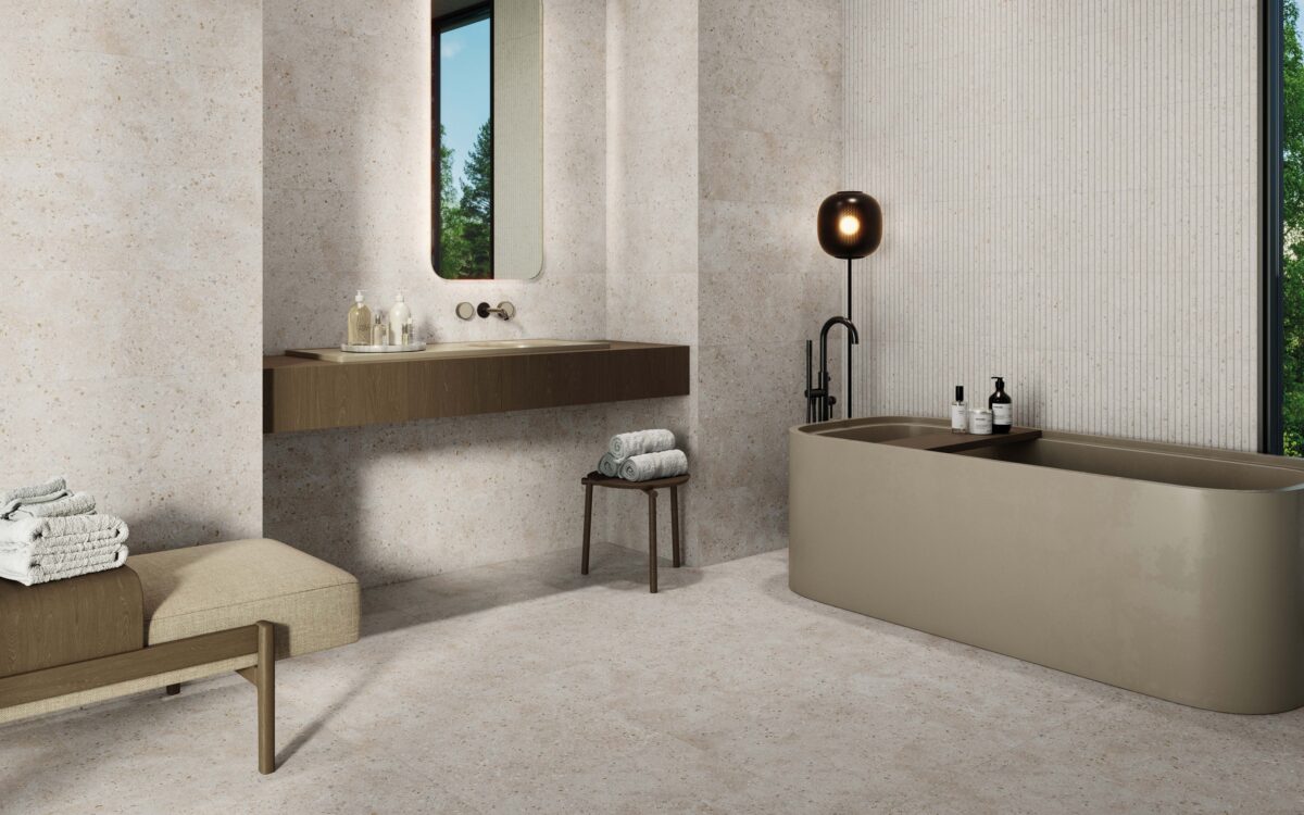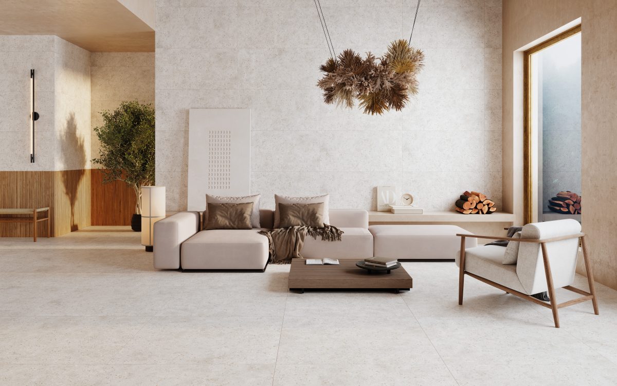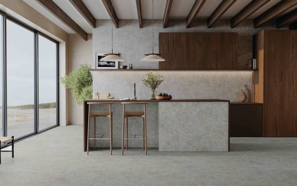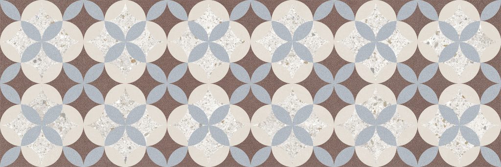 Der Stil unserer mediterranen Serie zeichnet sich durch einen modernen Terrazzo mit grauen, weißen, goldenen und rötlichen Flocken aus. Eine Kollektion mit einer weichen Steinmikroreliefstruktur und einer sehr abriebfesten, gemaserten Oberfläche in allen PEI 4-Farben, die für stark frequentierte Räume empfohlen wird.