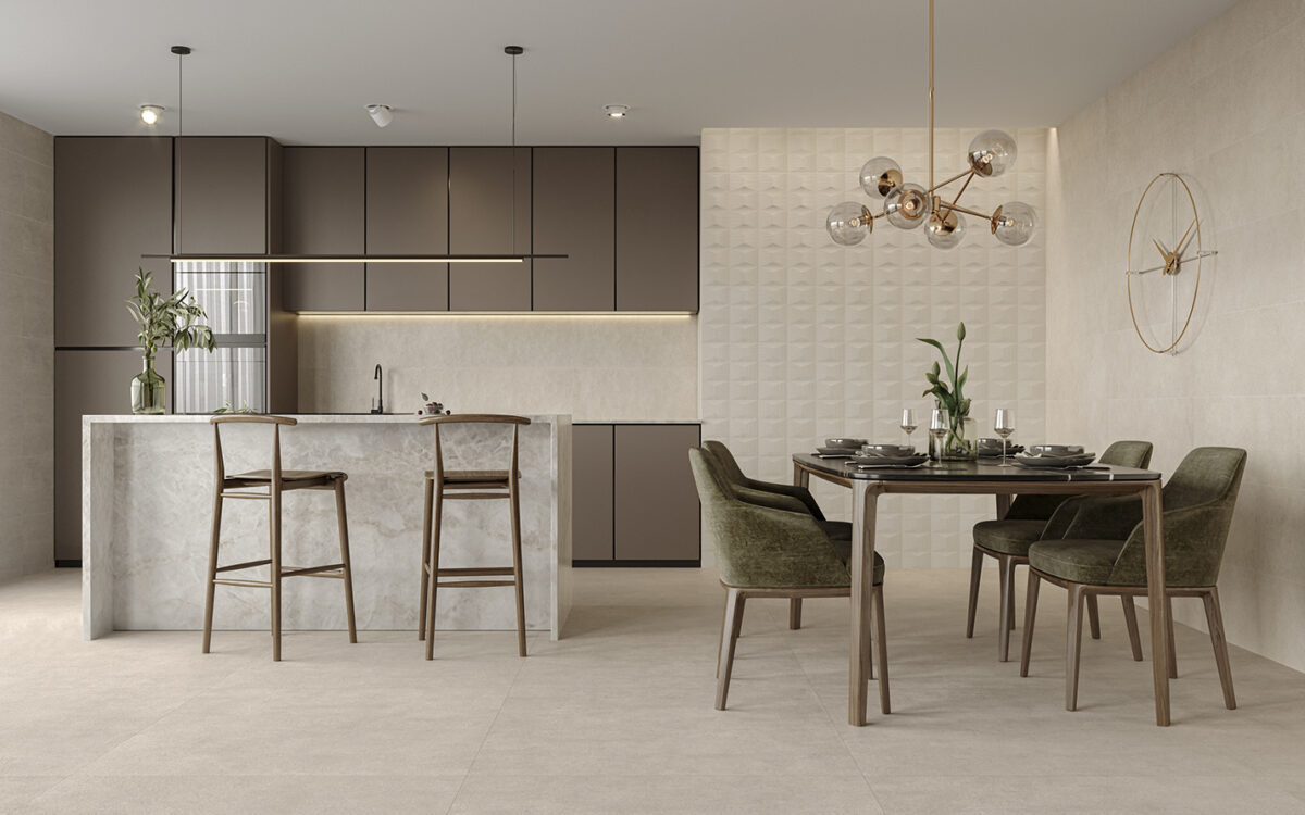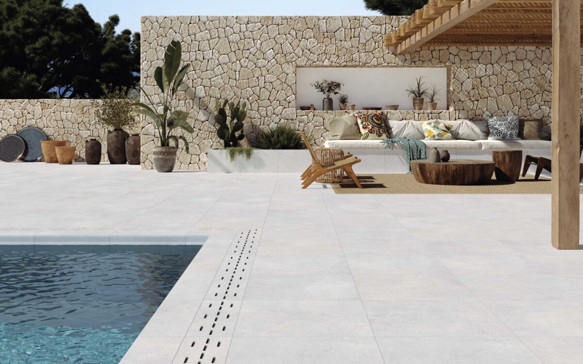 Die Kollektion schafft ein Gleichgewicht zwischen Innen- und Außenbereichen durch ihre Vielfalt an Formaten und Oberflächen, in denen sich Tradition und Gegenwart vereinen.