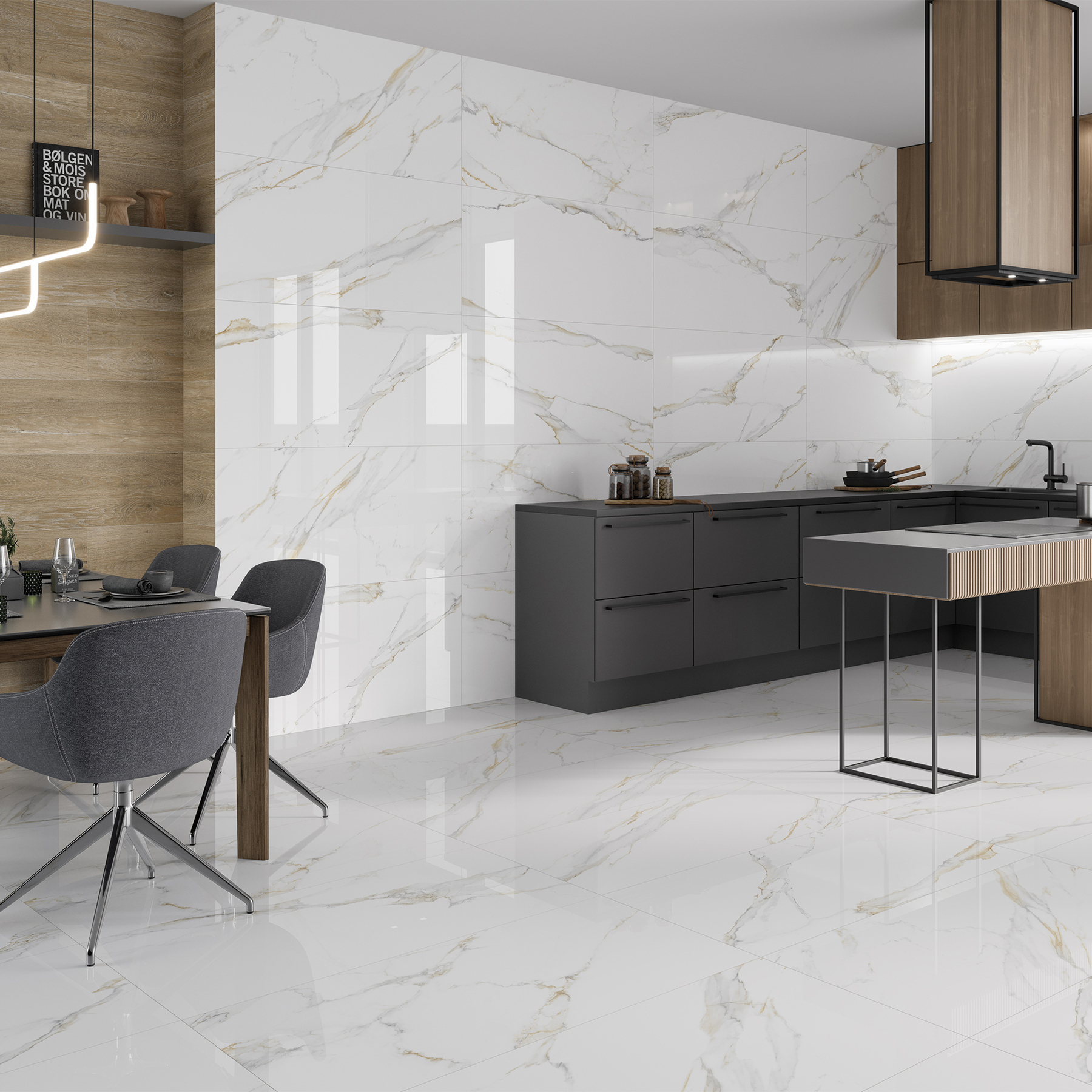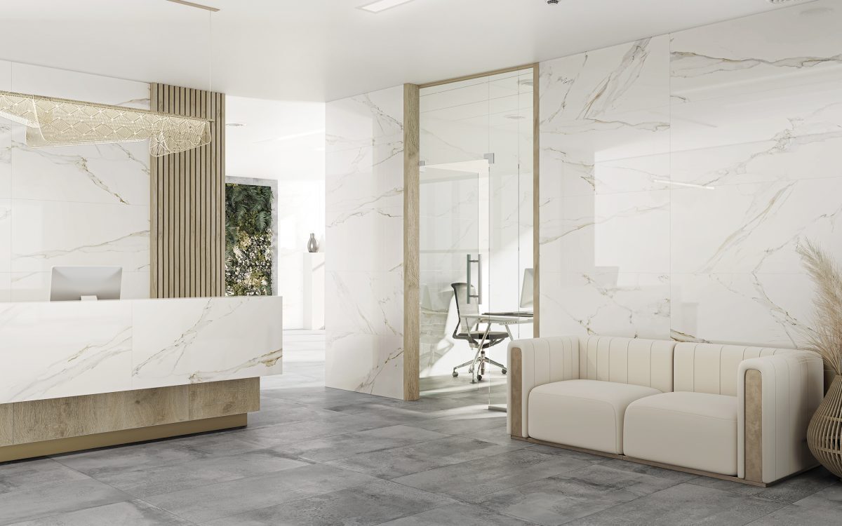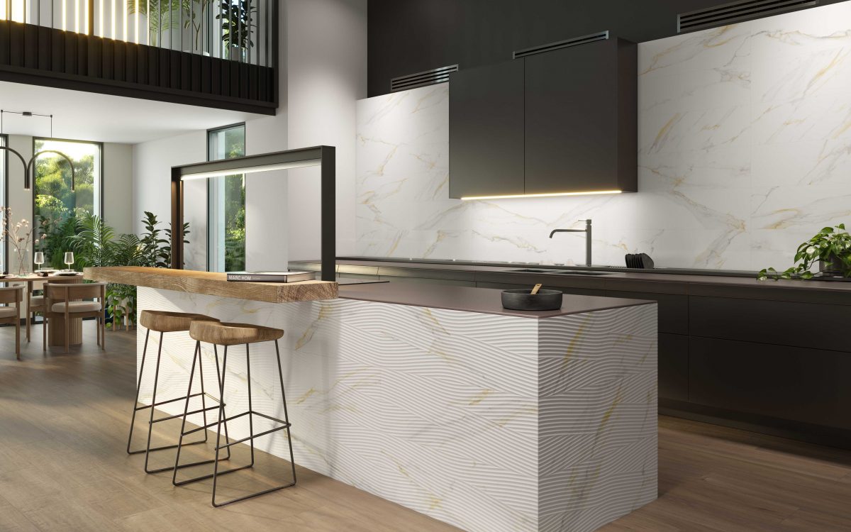 Vogue Bianco ist eine Kollektion aus Calacatta Gold Marmor, die sich durch eine sanfte grafische Intensität auszeichnet, eine einzigartige Farbgebung, bei der hellgraue und goldene Adern auf einer rein weißen Oberfläche verschmelzen. Eine Kombination aus Natürlichkeit und Licht, perfekt für die avantgardistischen Designs der heutigen Branche.