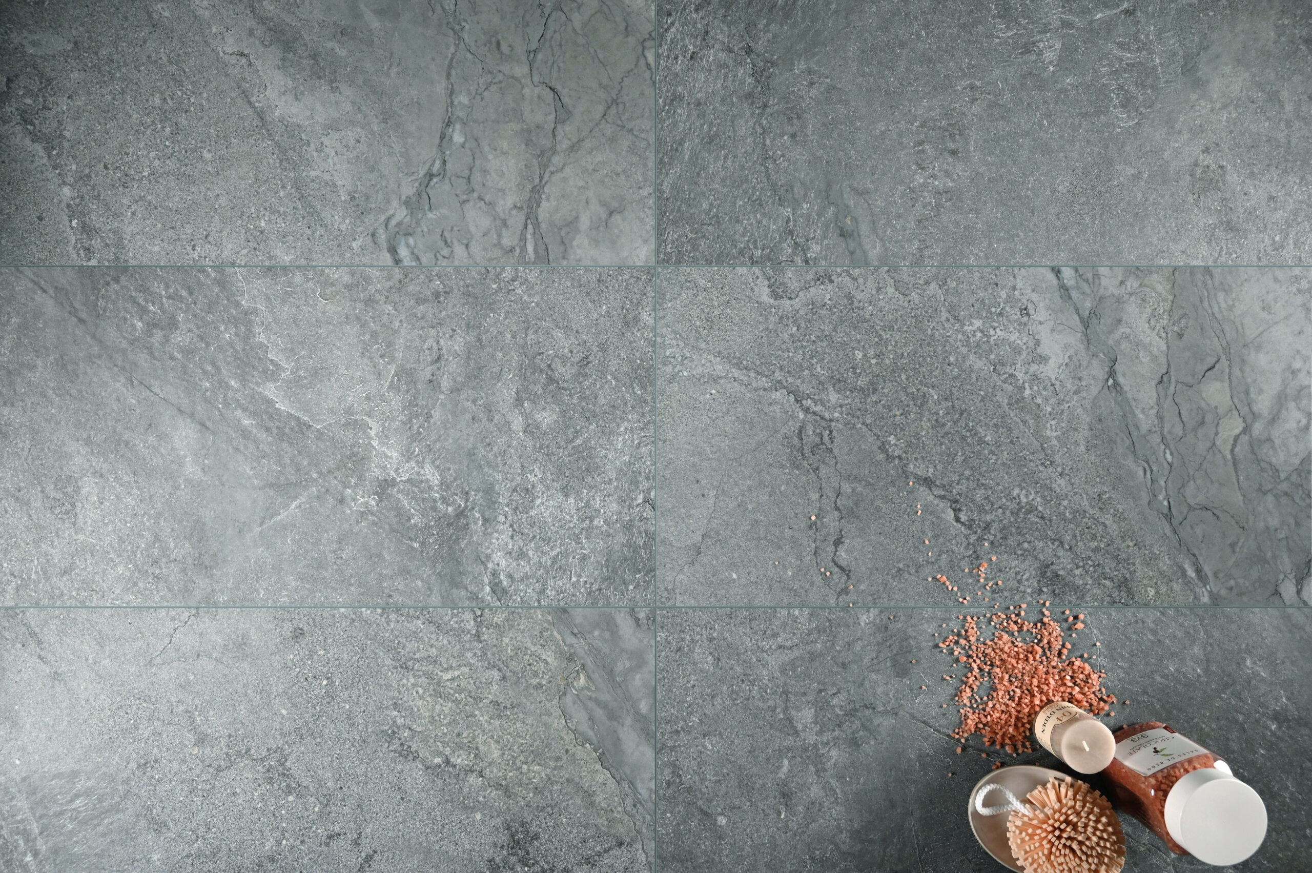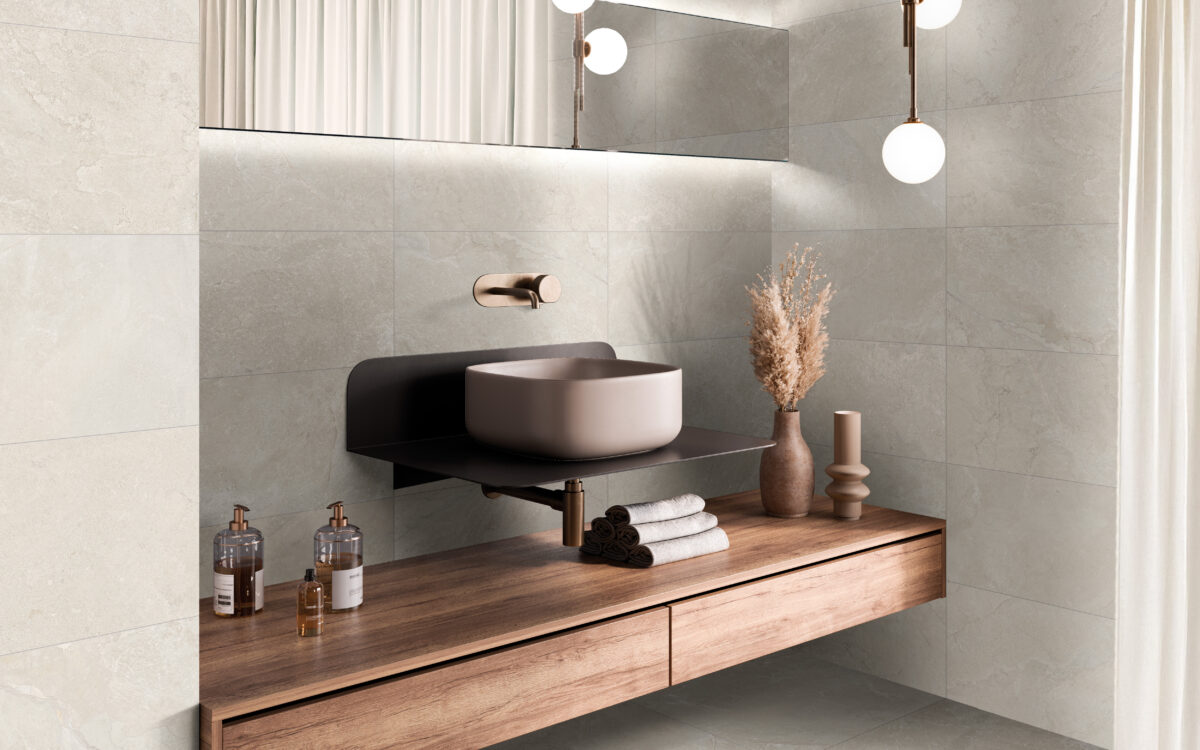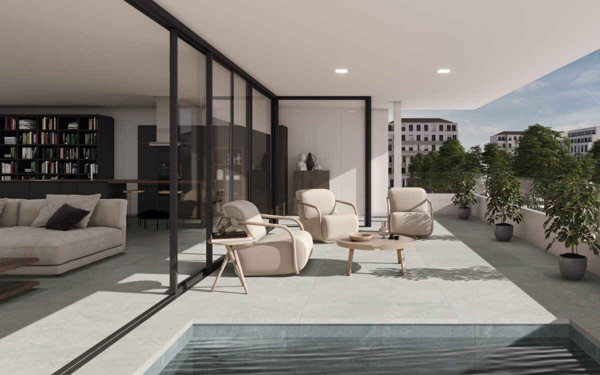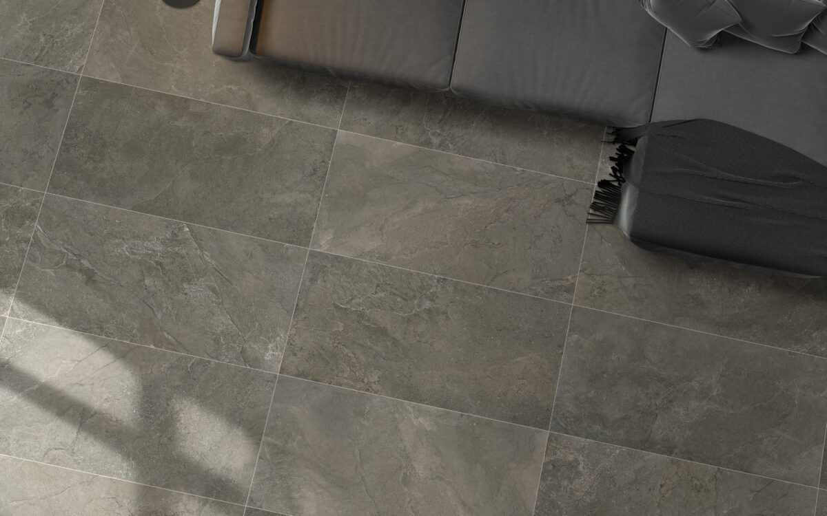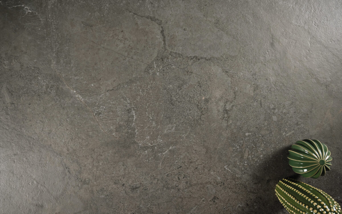 Die Kollektion Slate Mix verbindet die natürliche Eleganz von Schiefer mit der zeitgenössischen Subtilität von Zement und schafft so ein modernes und funktionales Feinsteinzeug.